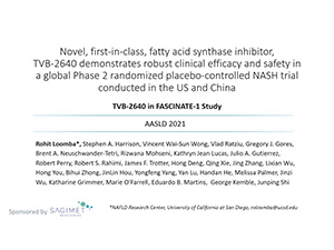 Novel, first-in-class, fatty acid synthase (FASN) inhibitor TVB-2640: efficacy, safety and biomarker results from a global phase 2 randomized pbo-controlled NASH trial, FASCINATE-1